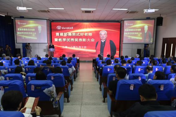 9月10日,学校隆重举行首届郑德荣式好老师暨教学优秀奖表彰大会。数学与统计学院高夯、音乐学院尹爱青、文学院王确、化学学院刘群4位教授被评为“郑德荣式好老师”。同时,全校共有10名教师获炜然奖教金,3名教师获明德教师奖,3名教师获宝钢优秀教师奖,5名中青年教师获教学新星奖,8名教师获得教学优秀奖,1名教师获教学卓越成就奖。与会领导为获奖教师颁发了证书和奖杯。