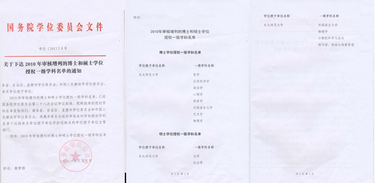 3月24日,我校在历史学、地理学等学科的 基础上又新增哲学、应用经济学、政治学、心理学、体育学、外国语言文学、艺术学、物理学8个博士学位授权一级学科;新增法学,社会学,外国语言文学,物理 学,计算机科学与技术,图书馆、情报与档案管理6个硕士学位授权一级学科。经国务院学位委员会进行学位授权点调整后,我校博士学位授权一级学科增至22 个,硕士学位授权一级学科增至34个。