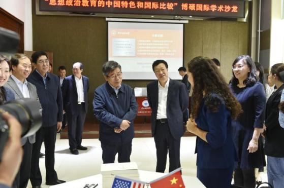 6月4日,教育部党组书记、部长陈宝生,吉林省委书记巴音朝鲁一行来到我校调研。认真听取了校长刘益春关于学校综合改革和思想政治工作的汇报。对东北师大多年来始终坚持为基础教育服务、坚守国立师范大学的重要使命、秉持“尊重的教育、创造的教育”理念、全面深化综合改革、扎根中国大地建设世界一流师范大学、服务国家战略和地方经济社会发展等思路和做法表示赞许,对学校认真贯彻落实中央31号文件精神,把思想价值引领贯穿教育教学全过程,培养大批又红又专、德才兼备、全面发展的中国特色社会主义合格建设者和可靠接班人等创新性做法予以肯定。并来到思想政治教育研究中心观摩了“思想政治教育的中国特色和国际比较”博硕国际学术沙龙和“征途杯”案例分享与工作思考马克思主义理论实践教育活动,与参加活动的留学生亲切交谈,合影留念。
