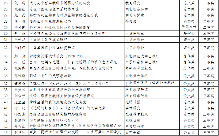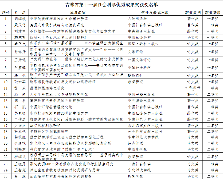 吉林省第十一届社会科学优秀成果奖获奖名单
