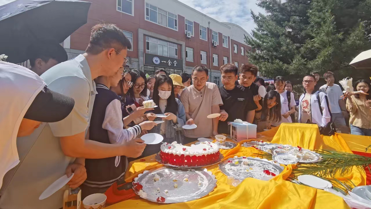 与运动会同时进行的,还有以“会展东师,美食天堂”为主题的第七届东师美食嘉年华活动。食物雕刻构思精巧、栩栩如生;“千里江山”和“高山流水”隔空呼应,相得益彰;各式菜系争奇斗艳、难分伯仲;免费分发的巨型蛋糕和烤全羊,在无数学子们的期待和惊叹中,将美食节的气氛推上了高潮……此次活动由后勤保障部饮食服务中心与校团委联合举行,在两校区餐厅及周边以食会友,邀师生共品东师“食韵”。从精心烹饪的珍馐佳肴到精美可爱的小糕点,菜品中融入了多种中国元素、东师元素,每道菜都有自己独特的主题、故事和味道。活动采取线上与线下相结合的形式进行,川剧变脸、舞狮表演、音乐演唱等精彩节目,为美食节增添了火热气氛。当天,学校餐厅推出全部档口7折特价活动,以回馈广大师生的支持。