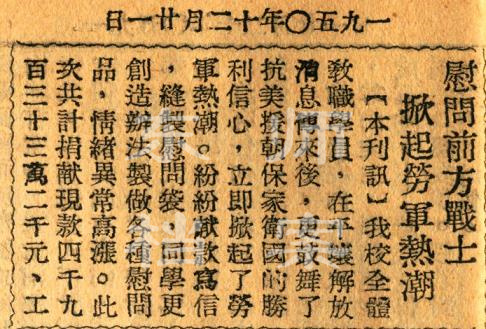 师生通过板报和校刊等阵地发表诗歌和文章,致敬最可爱的人,鼓舞斗志